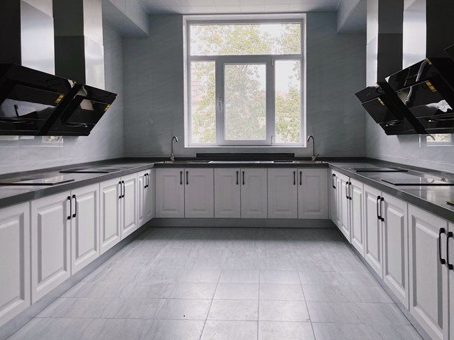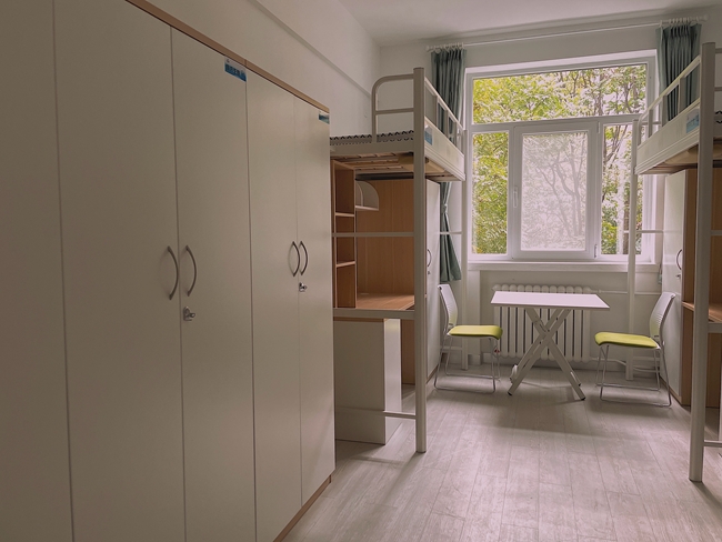 研究生公寓装修改造工程自2022年6月20日进场开工,克服了工期紧张、小区疫情封控、建材家具及建筑垃圾运输受限、重大活动停工要求等诸多困难,历时四个月完成全部装修改造内容。改造方案充分采纳了研究生的意见,从方案设计、建材选购、施工过程管理等各个环节都执行安全、环保、健康的高标准。本次改造对功能布局进行了合理规划,按规范增设了消防系统,每层配备公共厨房、淋浴间、净水器等,门窗、家具全部换新。